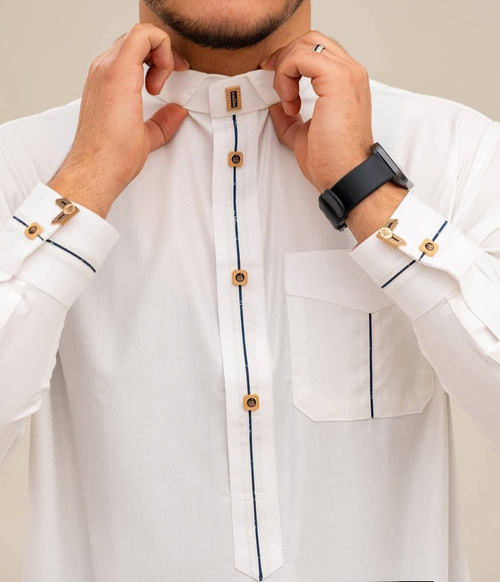 قميص الهيثم رجالي فاخر 2026 – أبيض / أسود | تصميم راقٍ